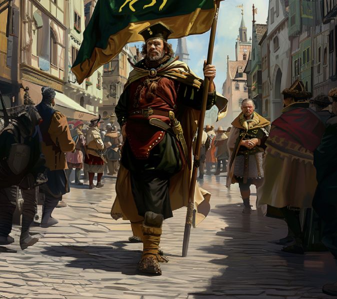 Lothrinischer Herold auf dem Marktplatz Mahburgs